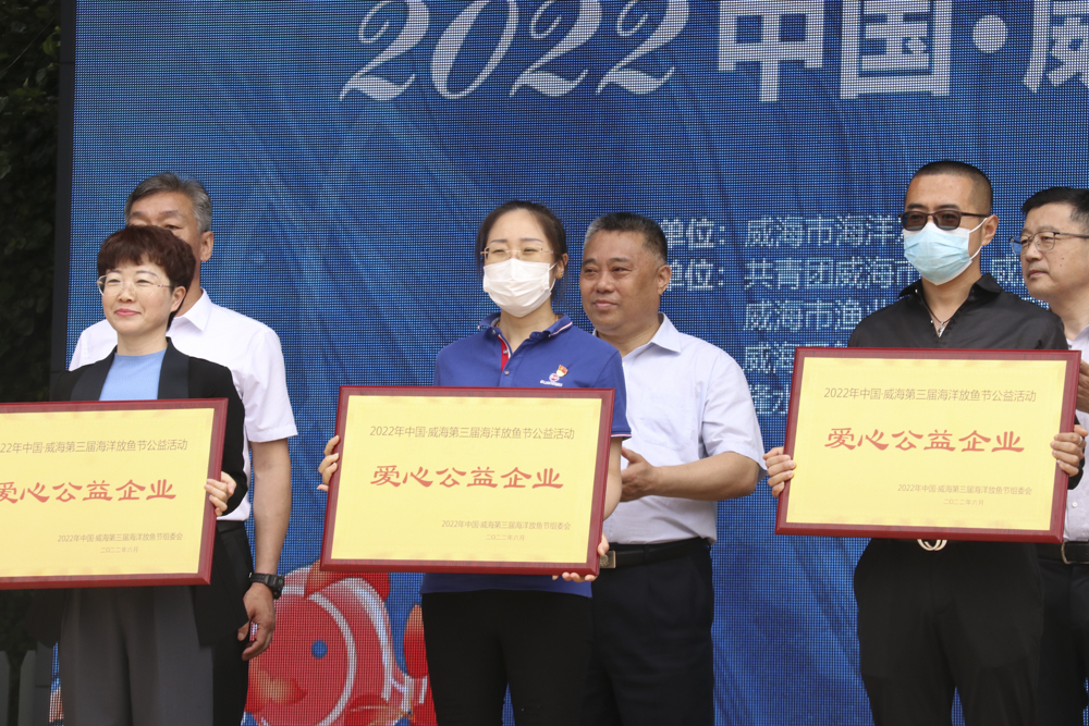 啟動(dòng)儀式現(xiàn)場(chǎng),與會(huì)領(lǐng)導(dǎo)為愛(ài)心企業(yè)頒發(fā)了熱心公益活動(dòng)牌匾。作為此次活動(dòng)的承辦方之一,光威集團(tuán)自1999年以來(lái),先后在北京、南京等多地放流魚苗近百萬(wàn)尾,為海洋生態(tài)恢復(fù)和環(huán)境保護(hù)貢獻(xiàn)了力量,彰顯了民營(yíng)企業(yè)的責(zé)任與擔(dān)當(dāng)。